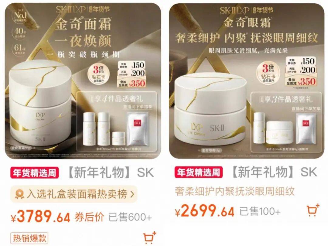 在这一市场趋势的推动下,2024年四季度,SK-II推出LXP超高端系列,拿核心产品金奇面霜来说,50g正装售价高达3900元,但在天猫旗舰店累计销售量仅有600+。市场表现平平。