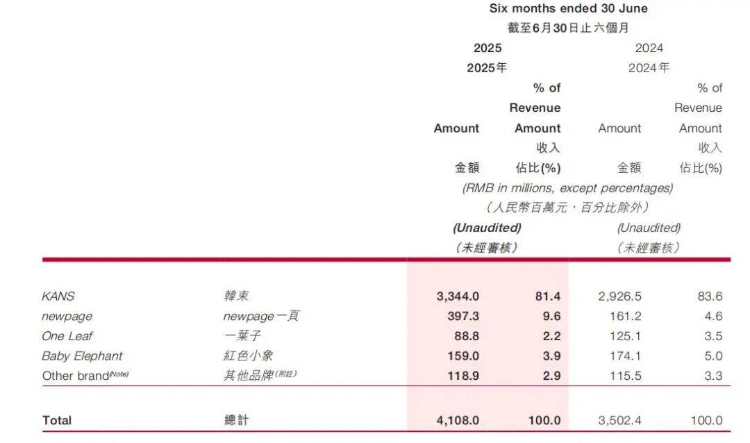 其他品牌则陷入了增长困境。曾经的网红品牌一叶子,2025年上半年营收仅0.89亿元,同比下滑29.0%;母婴护理品牌红色小象营收1.59亿元,同比下滑8.7%。其他品牌也仅仅是微增,均尚未找到明确的增长路径。