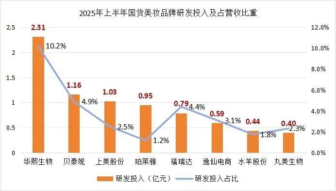 其研发投入与营销能力严重不匹配,成为制约品牌长期发展与爆款复制的核心瓶颈。2025年上半年,公司研发费用率仅为2.5%,虽较上年同期提升0.3个百分点,但与国货同行相比,这一比例也处于下游。